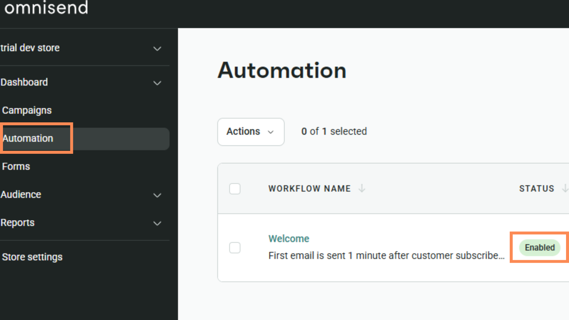 5. Once done, Omnisend will handle the rest! You’ll be able to continue on from step 5 in the Shopify workflow above from here on 🙂