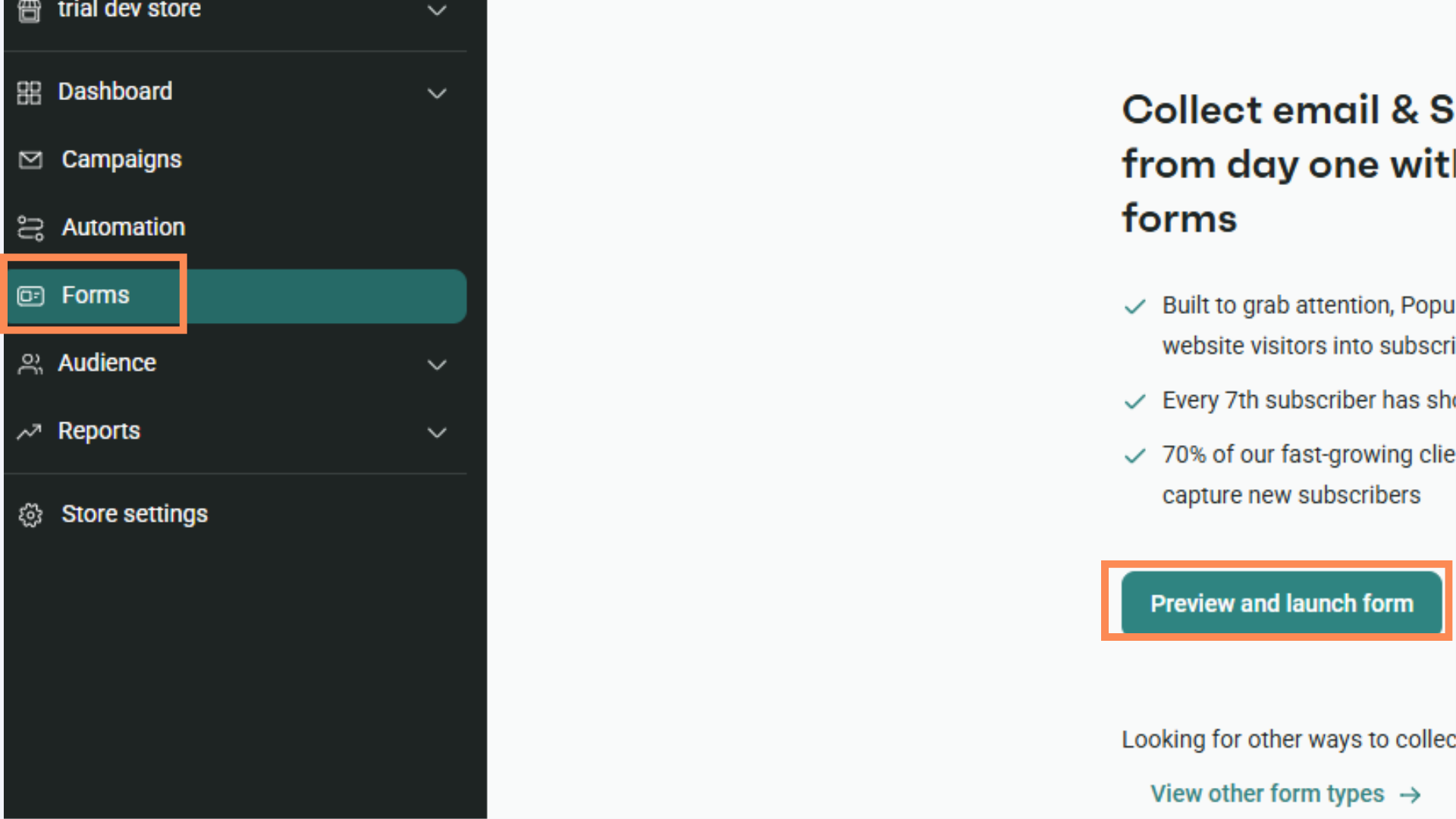11. Lastly, Let’s create & enable the actual form on your website. Go to “Forms” then “Preview & Launch Form”.