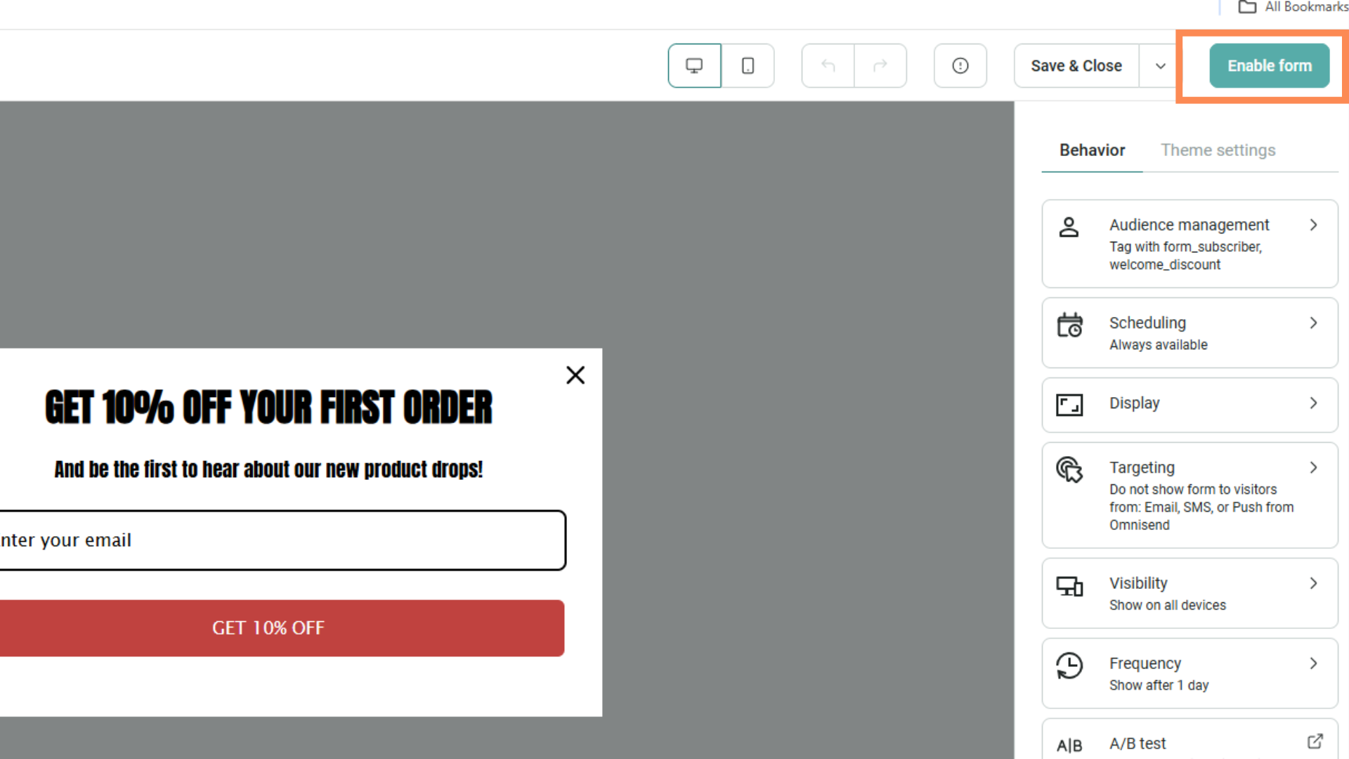 13. You’re finally done! Now when visitors or subscribers sign up to the form, they’re added to the engagement flow with Omnisend’s welcome email series automation!