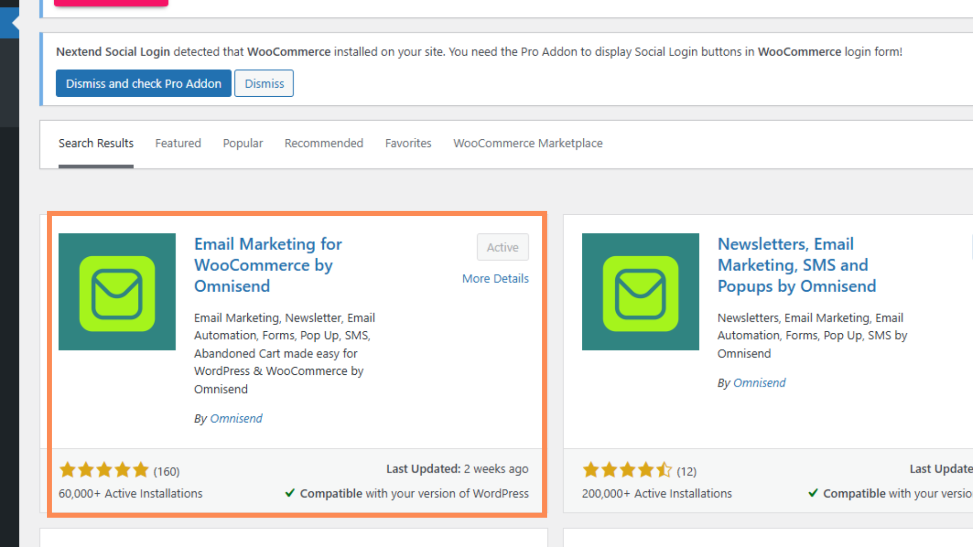 2. Find, install, & activate the Omnisend app in WordPress Plugins.
