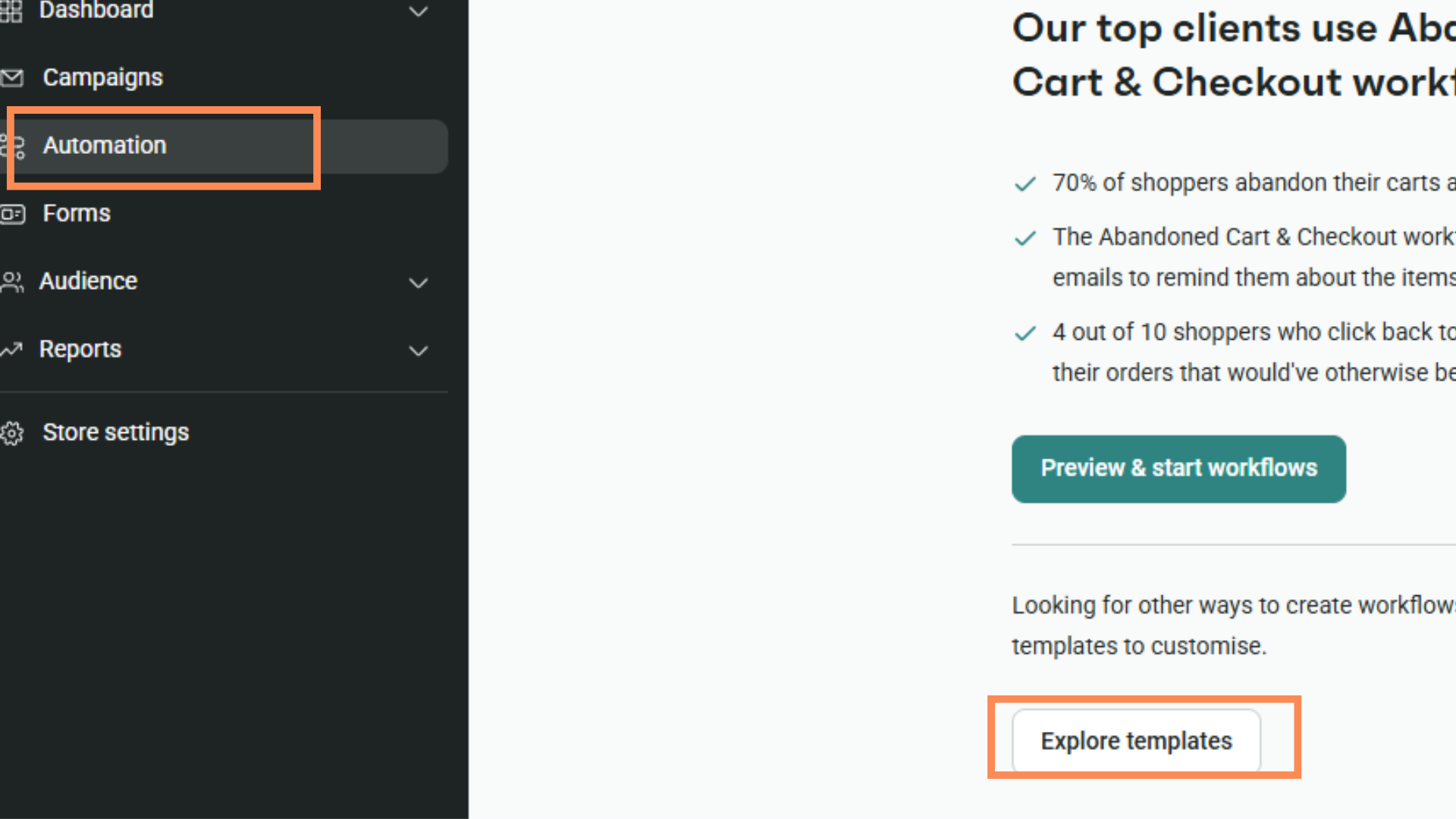 6. You’re done connecting your account 🙂 just a little bit more so we can setup a basic automation. Head to “Automations” then “Explore Templates”.