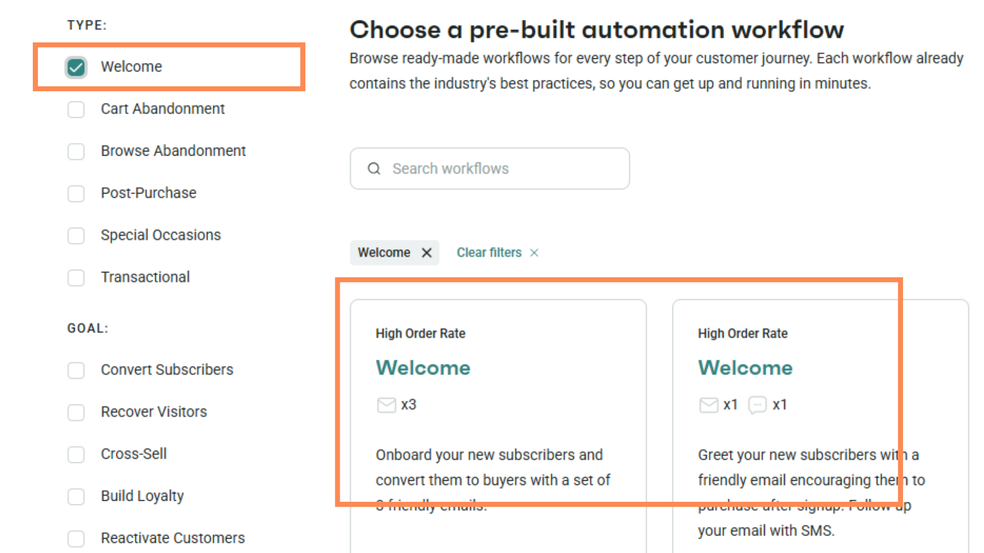 7. Select “Welcome” type & choose from any of the ready-made welcome templates!
